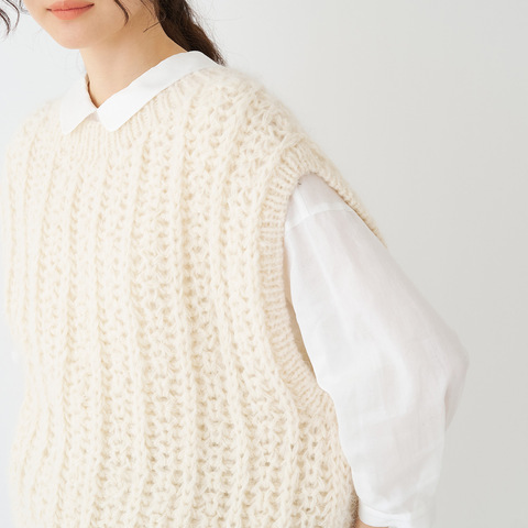ふんわり上質なあたたかさ、アルパカを贅沢に使った手編みベスト