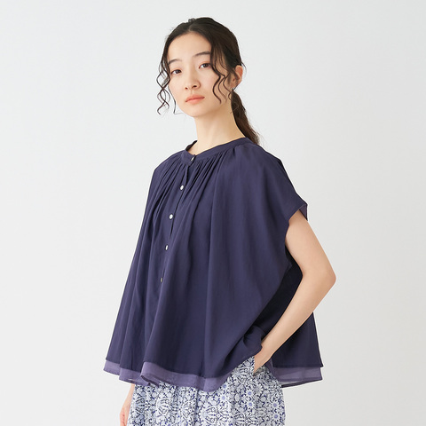 インドならではの透明感のある薄手のコットンボイル生地ををぜいたくに使用した、ギャザーブラウス。