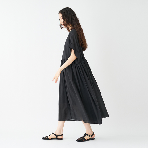 インドで織り上げた上質なコットンボイルを使用した、やさしい透け感が美しいワンピース。