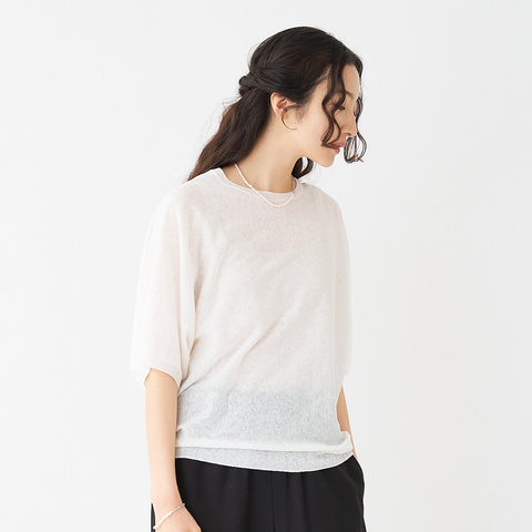 極上の軽やかさと柔らかい肌あたりが魅力の、ドルマンスリーブニット。