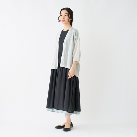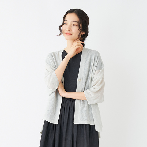 上質な素材感が引き立つシンプルなデザインだからこそ、幅広いスタイルに対応。夏のお出かけにも、室内での冷房対策にも、一枚あると重宝するカーディガンです。