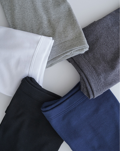 初めはフィット感がありますが、洗濯を重ねるうちに少し緩み、自然な着心地に変化します。洗濯後も型崩れしにくいため長く愛用いただけます。