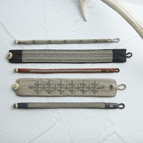 スカンジナビア・ラップランドの先住民、「サーミ族」の伝統的な模様と素材を用いた、ひとつひとつ手仕事で作られるブレスレットは、5年10年と年月がたつほどに色に深みが生まれます。