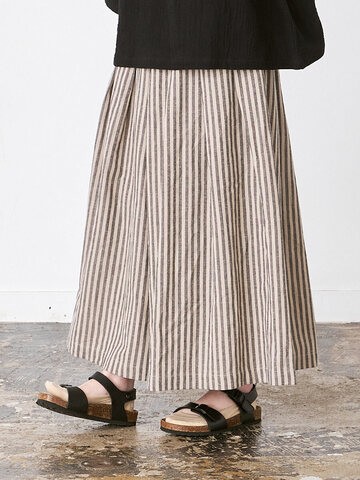 D*g*y|ウエスト配色フレアパンツ 綿麻ジャガード D3193