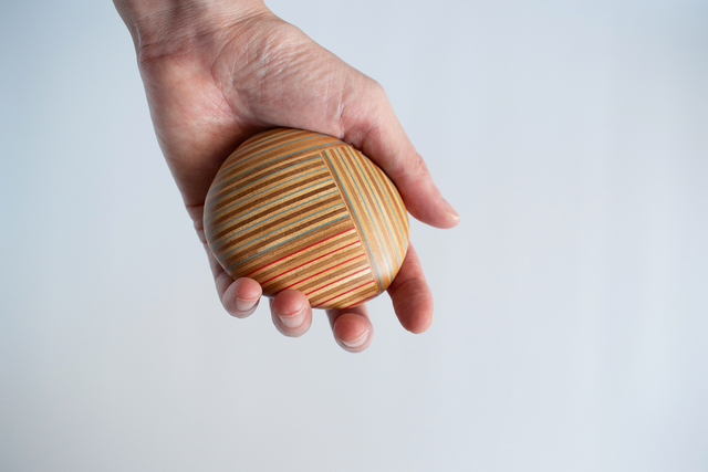 木材の濃淡も相まったカラフルなストライプ模様の美しさはもちろん、北海道産広葉樹のすべすべとした心地よい触り心地も魅力で、ずっとさわっていたくなるほどです。
