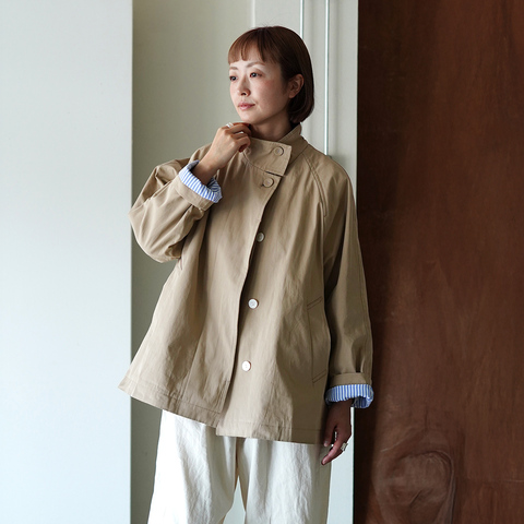 前後差のある着丈とラウンドしたストームシールドで、動きやすさとデザイン性を両立。スタンドカラーは閉めても開けてもきれいに見える設計で、着こなしの幅を広げます。