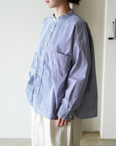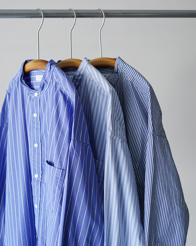 高密度ポプリンならではの程よいハリがシルエットをきれいに保ち、洗いざらしのシワ感さえ“味”として楽しめるのも魅力。