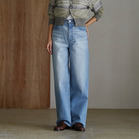 程よい太さのワイドストレートが、脚のラインを拾いにくく、すっきりとした印象に導くデニムです。