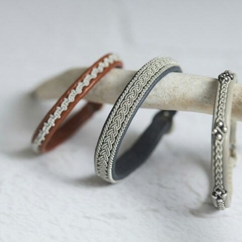 スカンジナビア・ラップランドの先住民、「サーミ族」の伝統的な模様と素材を用いた、ひとつひとつ手仕事で作られるブレスレットは、5年10年と年月がたつほどに色に深みが生まれます。