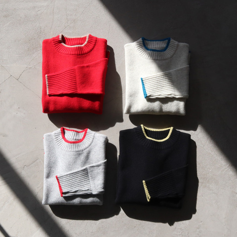 ソフトな着心地で冬のワードローブにぴったりなタスマニアラム 配色ニットです。