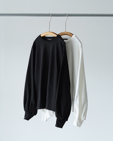 コンパクトな身頃に立体感のあるパフスリーブを組み合わせ、大人らしい華やかさと抜け感を添えたロングTシャツ。