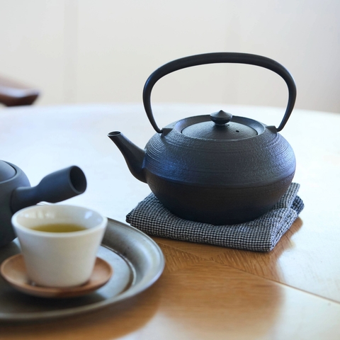 そこで「コンパクトで使いやすいサイズ感」と「鉄瓶としての良さ」を両立させるべく誕生したのが、こちらの「鉄瓶・平つぼ」です。内側に琺瑯加工を施さず鉄そのままであるのが一番の特徴。サイズは白湯を飲む習慣がある方や、1~2人分の美味しいお茶を淹れたいという方にぴったりな大きさです。