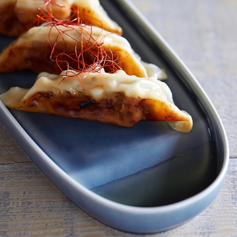 小皿を使うとソースや薬味をこぼしてしまいがちですが、こちらの器はプレート内で完結できるので、その心配もありません。洗い物を少なくでき、片付けの手間を減らせるのもポイントです。伝統の道具がモチーフの器で、筆に墨をつけて穂先を整えるように醤油を払ったり、たれやソースを切ったり……。古来からの所作を食卓でもお楽しみいただけます。