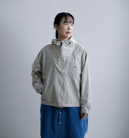 レトロなアウトドアウェアをベースにしたデザインが特徴のフーデッドショートジャケット。特殊ナイロン糸「スタナー」を使用し、ナイロン100%ながらまるでコットンのようなナチュラルな風合いを実現しました。さらに、裏面にはコーティング加工を施し、程よいハリ感と防風性、透湿性をプラス。軽量ながらも風を防ぎつつ蒸れにくく、快適な着心地を提供します。
