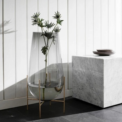 ブラスとガラスを組み合わせたフラワーベース。