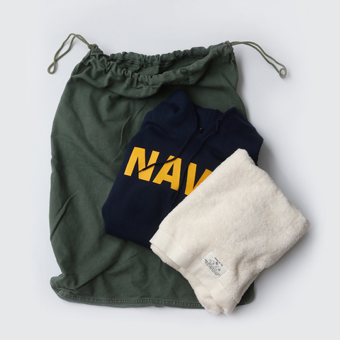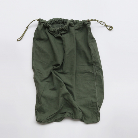 アメリカ軍で実際に使用されていたバラックバッグ。兵士の洗濯物の収納としてや、兵舎(バラック)内での収納、赴任地へ移動する際のバッグとして使われていたビッグサイズの巾着袋です。