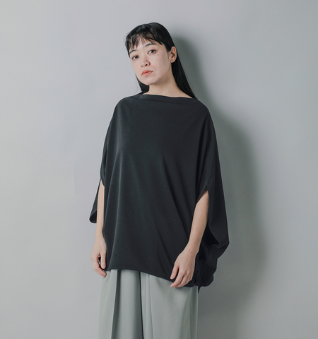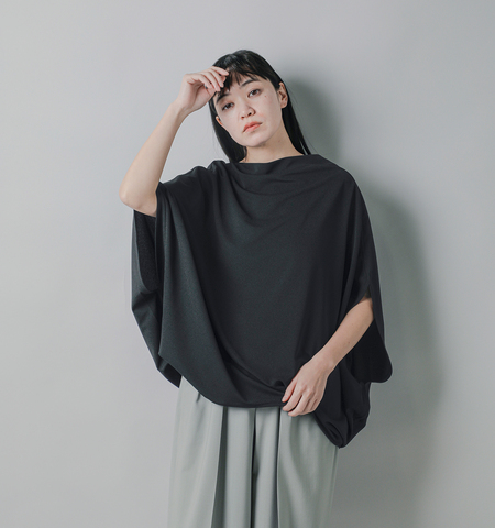 二枚の真円の生地を重ねたシンプルな構造ですが、着るとドレープが浮かび、立体的で豊かな表情を見せます。合わせるアイテムによって、デイリーからオケージョンにまで幅広く対応してくれます。
