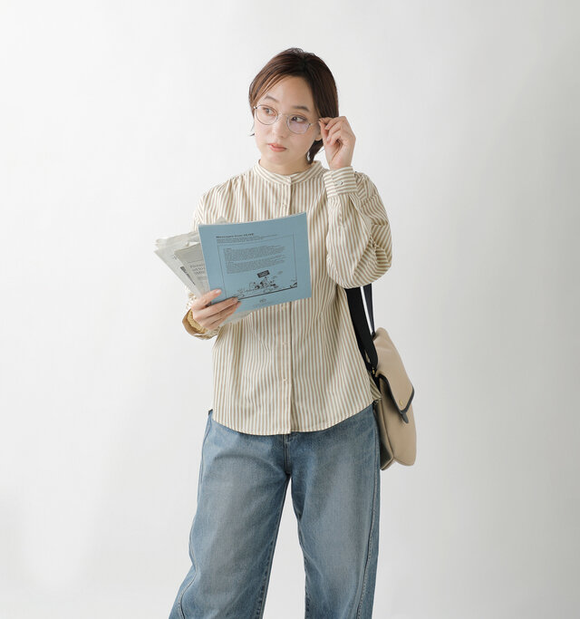 ブルーストライプ・モカストライプ/ポリエステル63% 綿37%
