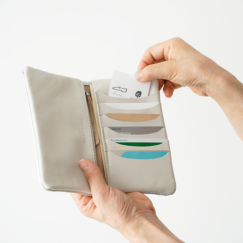 内側のジップ付きのコインスペースと左右に分かれたカードスペースが特徴。