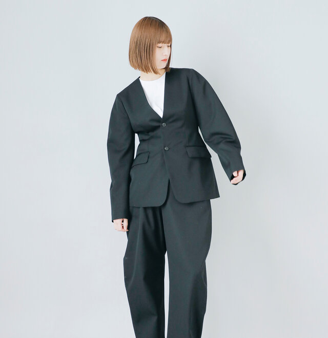 WHYTO.|インバーテッド プリーツ ノーカラー ジャケット “no collar jacket” wht23hjk4021-fn おでかけ フォーマル オケージョン