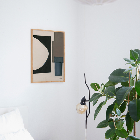 「Distinct」は、大胆な幾何学的フォルムの相互作用によって個性を強調しています。落ち着いた色調と大胆なネガティブ・スペースの微妙なコントラストが、抑制された調和を保ちながら、各要素の独自性を際立たせている。