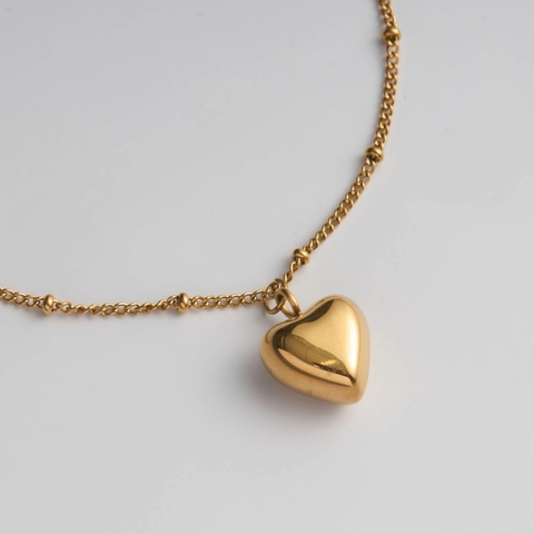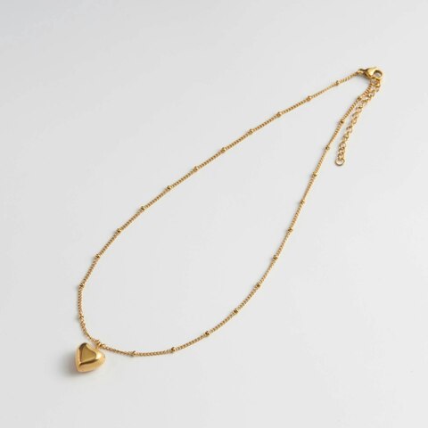 こちらはオンオフ問わず付けやすい、甘くなりすぎない上品なハートモチーフがポイント。ゴールドの輝きがオンオフ問わずくすみを払い、首元を彩ってくれます。