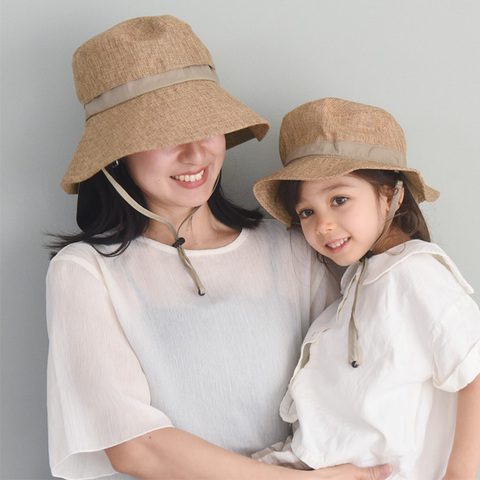「キッズのジュート風帽子」と同じ素材を使用しているので、親子でお揃いコーデをすることも。同じ色で揃えるのもよし、違う色で楽しむのも◎です。