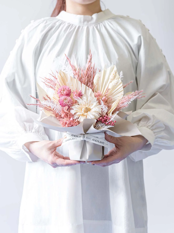 A. 明確にドライフラワーの寿命は決められていませんが、一般的には半年から1年ほどが「美しい状態を保てる期間」と言われています。時間が経つにつれ、色あせてきたり、花びらや葉がもろくなってまいりますが、その変化もお楽しみいただけます。
