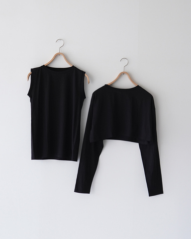 TopsとInnerの2枚セットで楽しめる変形カットソー。軽やかな素材感で、春夏のスタイリングにぴったり。別々でも使えるので、着回し力抜群のアイテムです。