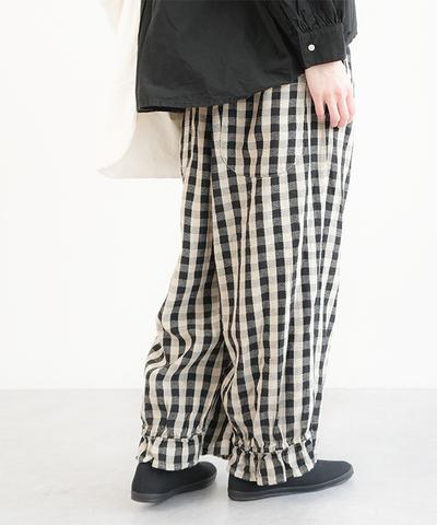 solamonat poche|ウール カーヴィーパンツ ワイドパンツ チェックパンツ poche-hd-wbp