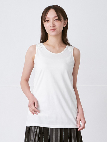 定番商品として人気の高い、衿レースタンクトップです。