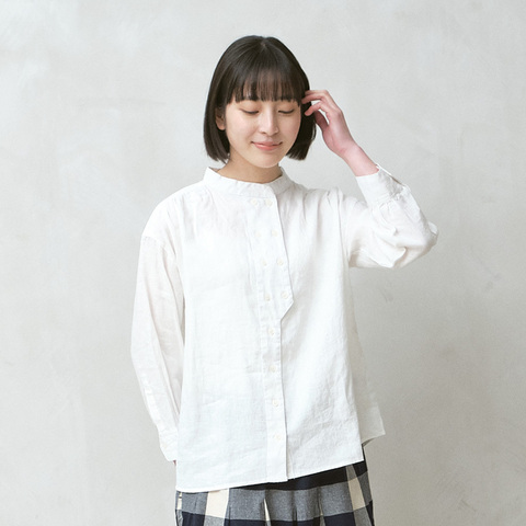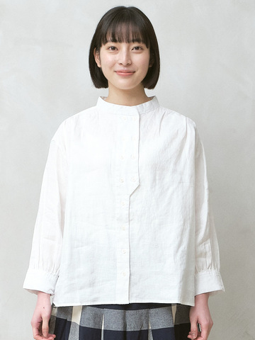 D*g*y|前フリルバンドカラーブラウス 綿麻オックス D9748