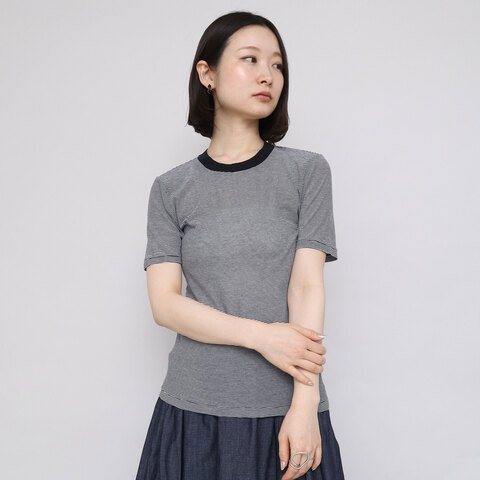 フィット感がありながらシアーに着こなせるトレンド感が魅力の半袖プルオーバー。