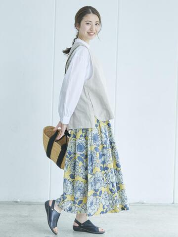 D*g*y|配色フレアスカート 麻オックス×綿ドビー D3196