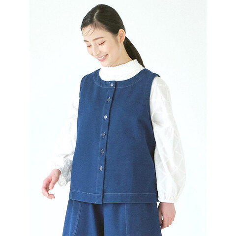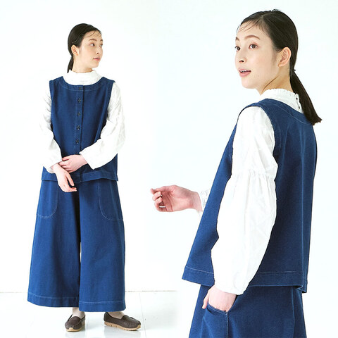 D*g*y|サイドボタンワイドベスト 綿麻デニム D9173