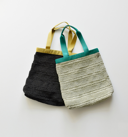 Pasand by ne Quittez pas(パサンド バイ ヌキテパ)より、メタリック マクラメ テープ ハンドル トートバッグをご紹介します。インドらしさ漂うメタリックスレッドを丁寧に手編みしたトートバッグ。ブラックとシルバーゴールドの2色展開なので、お洋服のテイストに合わせてコーディネートできます。A4サイズ収納可能なので、デイリーからおでかけ、旅行など、幅広いシーンでお使いいただけます。