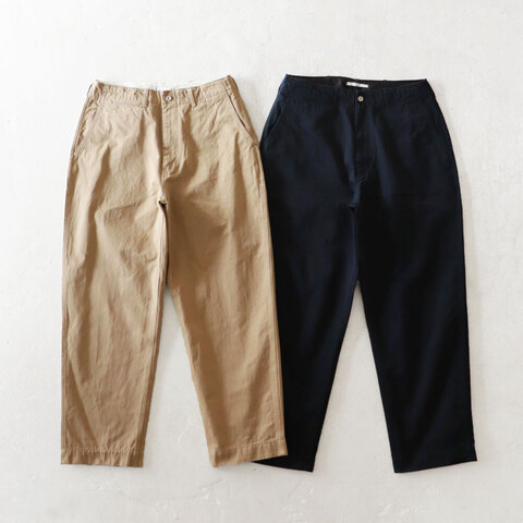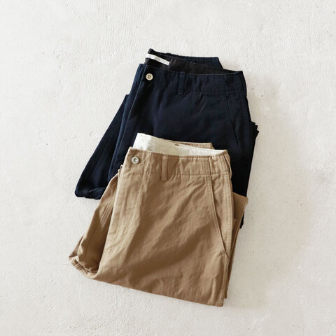 オリジナルの通年穿けるチノクロスを使用したトラウザー。