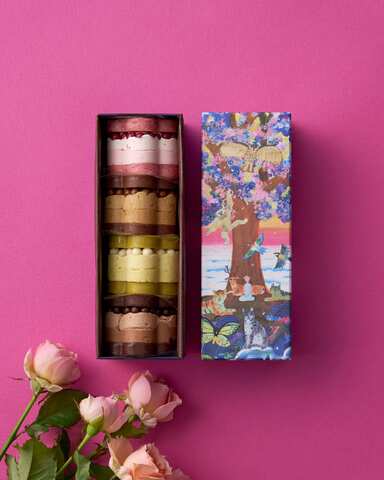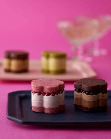 濃厚なバタークリームを通常のサブレではなく、なめらかな生チョコレート(ガナッシュ)で贅沢にサンド。 チョコレートの芳醇な香りとクリーミーなテクスチャーが織り成すハーモニーは、バレンタインにふさわしい特別なひとときを演出します。美しいパッケージデザインは大