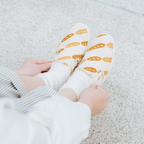お気に入りのパン屋さんめぐりの時や美味しいものを食べに行く時など、食べ物にまつわるお出かけに履いたら、より楽しいお出かけになりそうな予感。