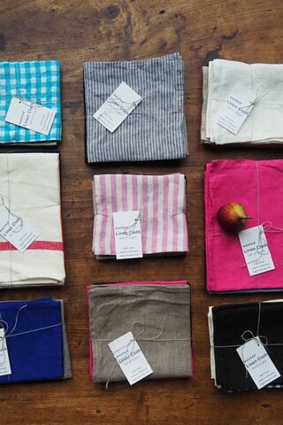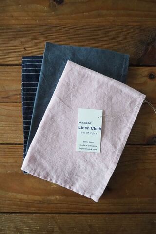 薄地、普通地、厚地、ワッフル地などさまざまなリネン生地のクロスを3枚組にした、クロスセットを作りました。