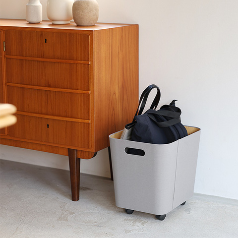 キャスター付きだから、玄関からリビング、リビングから寝室など、家中どこでも動かすことができます。掃除機やワイパーで掃除したいときも、さっとどかすことができるのが◎。