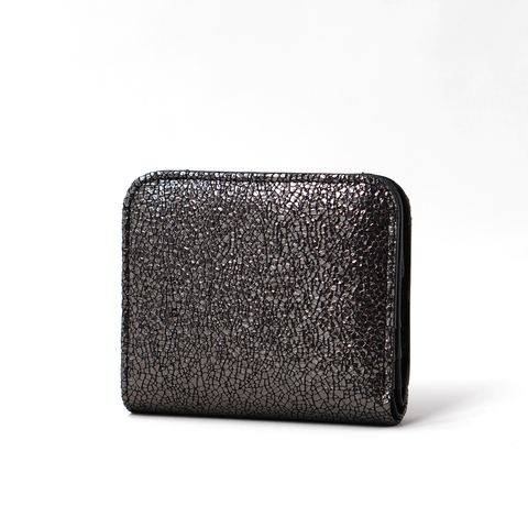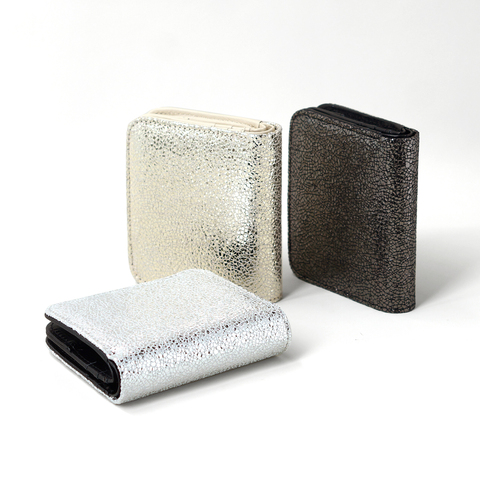華やかな輝きのレザーを使用した、二つ折り財布。