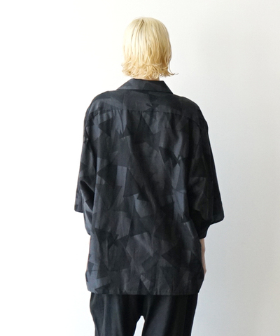 幾何学柄のオリジナルジャカード生地で作った、ワイドシルエットの7分丈開襟シャツです。