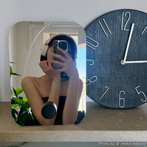 きれいな佇まいのミラーを使うと、気分よく身支度を整えられそう。 横置きの状態も美しい。