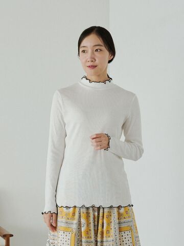 衿ぐりと袖口のメローロック部分をアクセントにした、ポンデならではのディティールが光る1枚に。