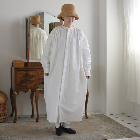 肌ざわりの良いコットンリネン素材を使用したバンドカラーワンピース。
