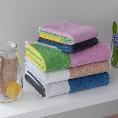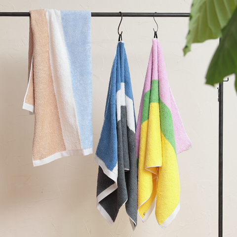 石本藤雄がデザインした、特徴的な色使いのタオル「いろは」シリーズからバスタオルが登場です。