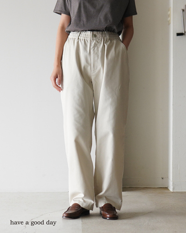 扱いやすさと上品さを兼ね備えた日本製パンツは、カジュアルにもスマートにも幅広く対応。have a good dayらしい“ベーシック&リラックス”な佇まい。自然体でいられるデザインが魅力です。