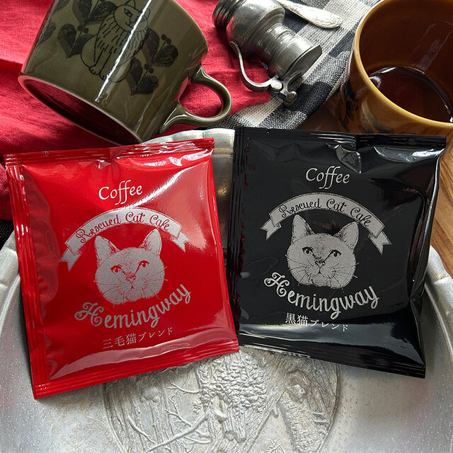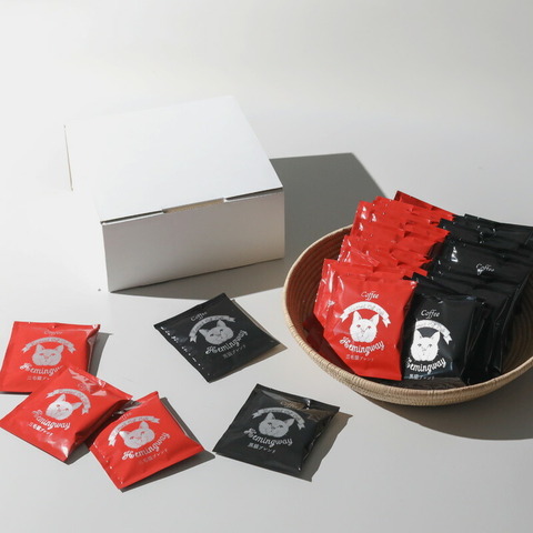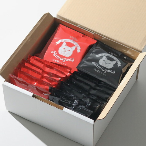 黒猫ブレンド16袋、三毛猫ブレンド16袋をボックスに入れて。