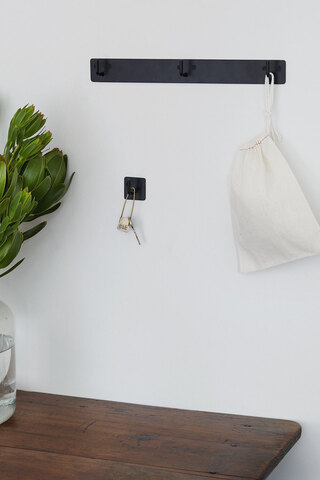 タイトなスペースにも取り付けることができるトリプルフック。少しの隙間さえあればそこが収納スペースに早変わりです。 アイアンタイプはブラックカラーとマットな質感で、シャープな印象。